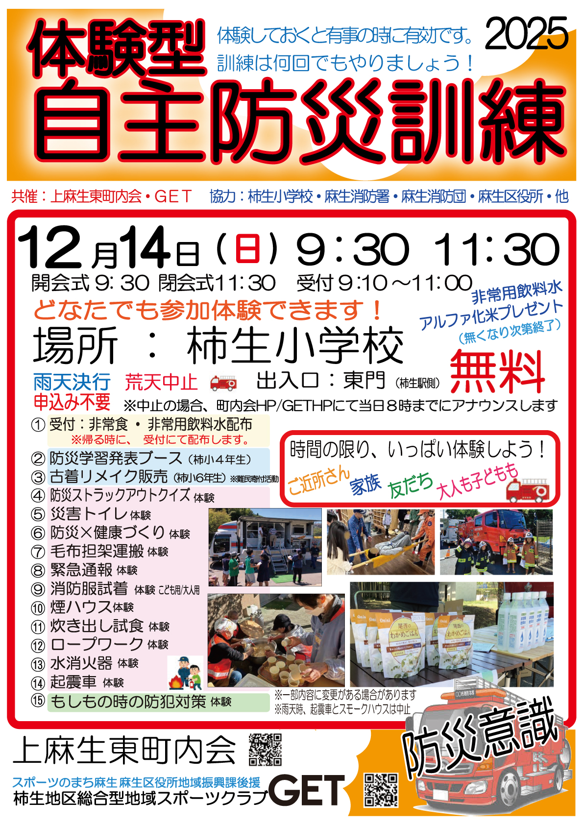- 体験型自主防災訓練開催!(参加費無料)